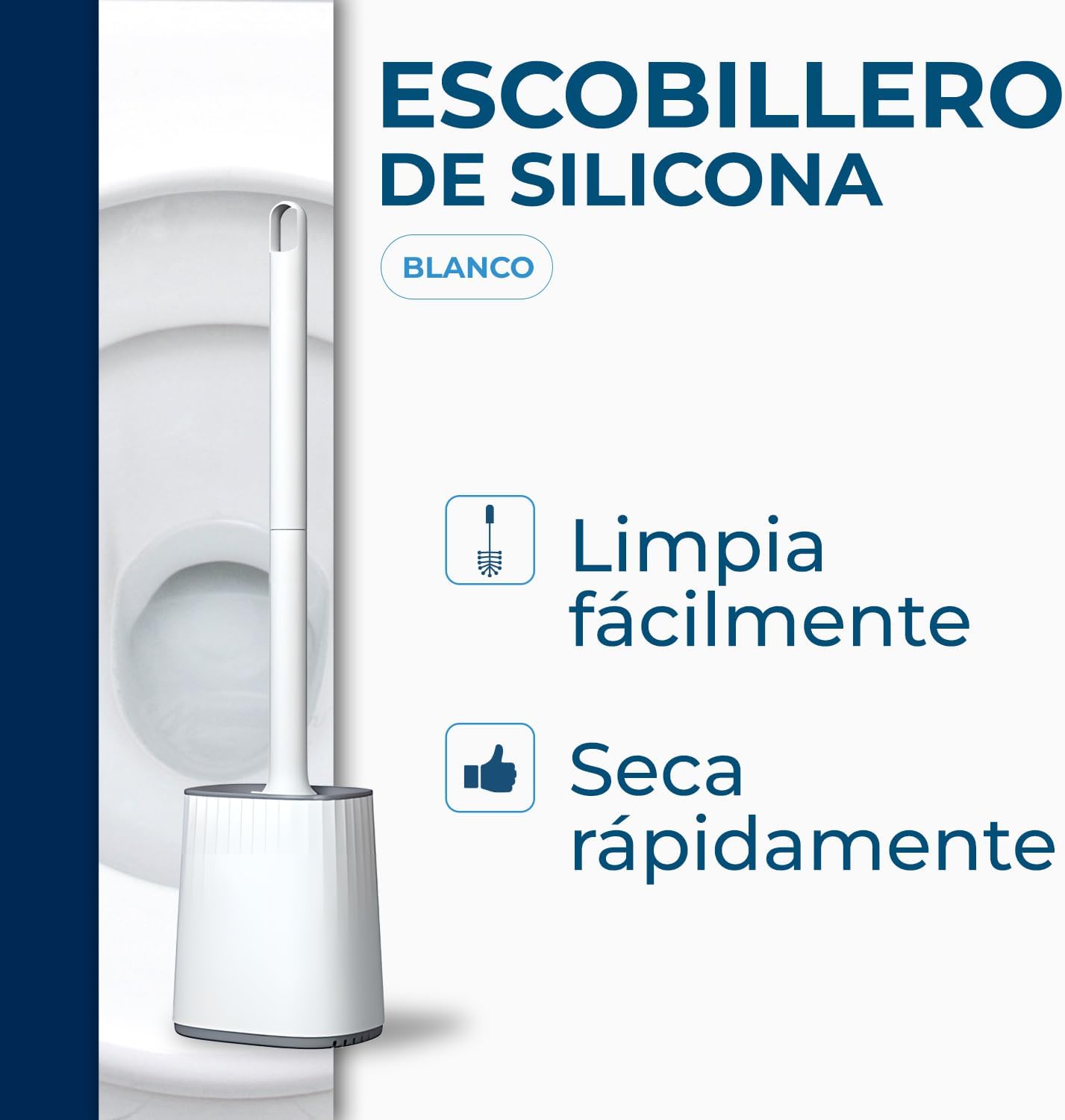 Diseñado para ofrecer una limpieza profunda y eficiente, este cepillo cuenta con cerdas de silicona flexibles que eliminan la suciedad y los residuos sin rayar la superficie del inodoro. Su diseño moderno en color blanco se adapta perfectamente a cualquier estilo de baño.