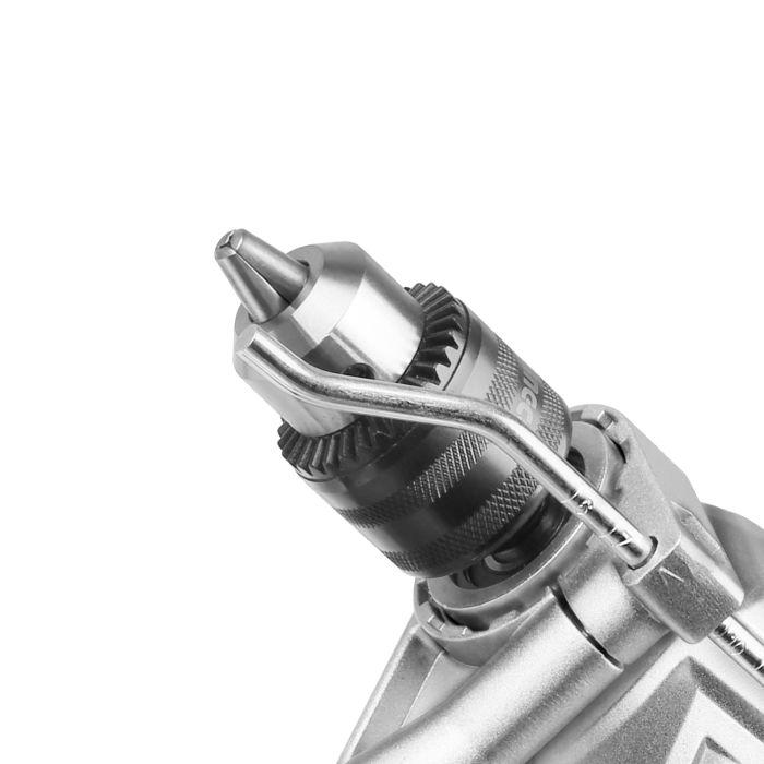El robusto mandril portabrocas de corona dentada de metal macizo proporciona una sujeción segura de la broca.